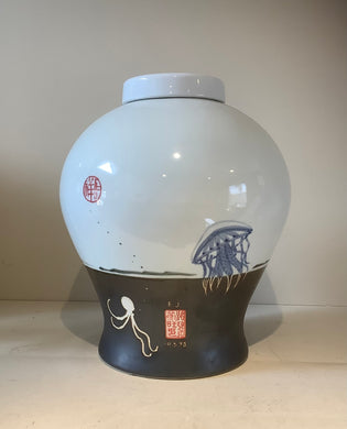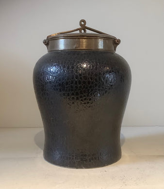 Brown Snake Skin Ceramic Jar with Metal Lid